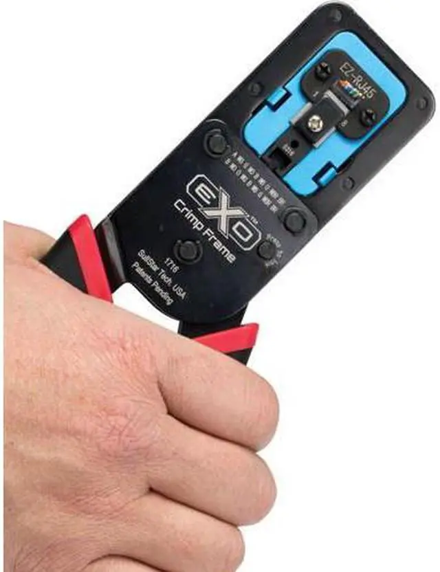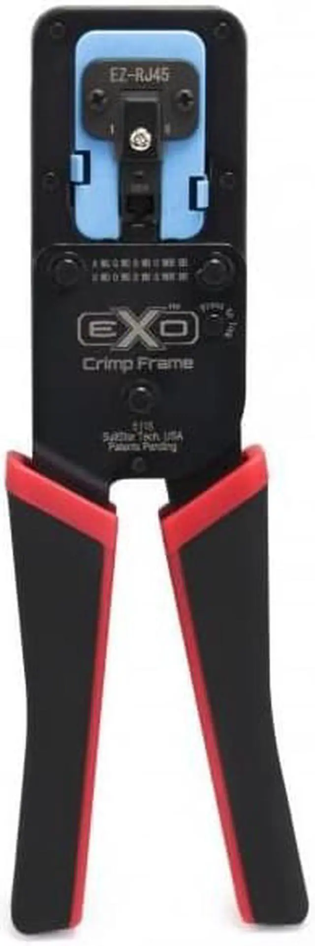 We are huge fans of manufacturers that are forward thinking with their product development; the EXO Crimp Frame is a great example of that. As technology advances, wire and connectors are going to continue to evolve. Platinum Tools EXO Crimp Frame is engineered to allow users to swap out dies as needed and avoid having to purchase an entirely new tool. The EXO Crimp Frame has dies available for EZ-RJ45 (included) as well as the newer exEZ-RJ45 connectors (not included). The patented EXO Crimp Frame + EZ-RJ45 Die from Platinum Tools was designed for easy termination of EZ-RJ45 connectors. The included EZ-RJ45 Die is interchangeable and reversible when used with the EXO Crimp Frame. The 100062C is designed for the original pass through EZ-RJ45 connectors which are a standard in the industry. The EXO Crimp Frame highlights a push button lock, ergonomic TPR handles, and works with the EXO-EX Die (Part Number PLA-100071C) for terminating ezEX-RJ45 connectors where cable diameters are larger. In todays networks, twisted pair cables are demanding more speed and bandwidth. To help meet these requirements, Cat5e/6/6A cables have increased in size. Both the outer diameter of the cable and the insulation diameter of the conductors are larger and vary by manufacturer, making cable and connector compatibility a challenge. The new patented ezEX-RJ45 Termination System is the solution providing greater cable to connector compatibility to meet higher performance demands. The ezEX-RJ45 connectors feature a unique integrated Hi-Lo stagger load bar and allows big conductors to pass through the front end of the connector making it easy to verify the wiring sequence before terminating. Features: Single cycle crimp and flush trim EZ-RJ45 Die is easily interchangeable Reversible EZ-RJ45 Die for ambidextrous operation Connectors lock into tool for correct positioning during crimp Push button lock for easy storage Ergonomic comfort grip TPR handles Includes the EZ-RJ45 Die for crimping EZ-RJ45 connectors EXO Crimp Frame works with EXO-EX Die for crimping ezEX-RJ45 connectors Specifications: Connector Compatibility: EZ-RJ45 Cat5e, Cat6, Shielded Cat5e and Cat6 (internal and external ground) Color: Black/Red (Crimp Frame), Blue (Die) Length: 8-1/2 (216 mm) Weight: Frame and Die 15.08 oz. (427.4 g) Platinum Tools ezEX-RJ45 Termination System Spec Sheet