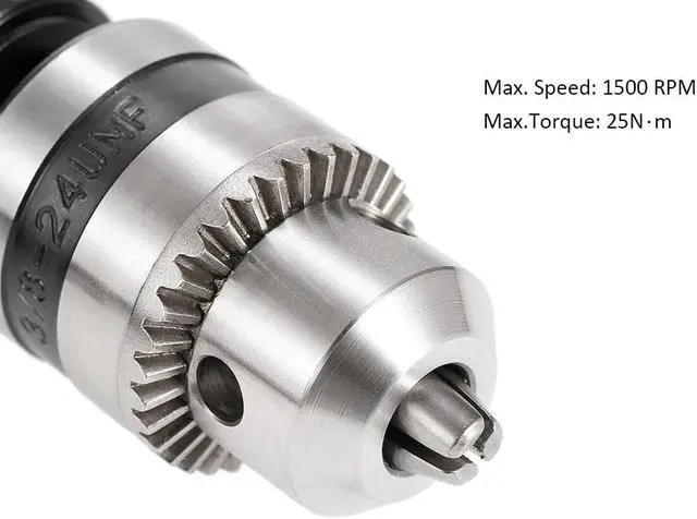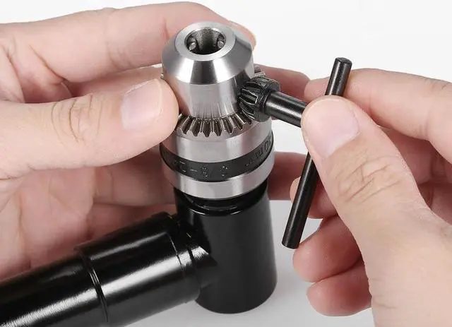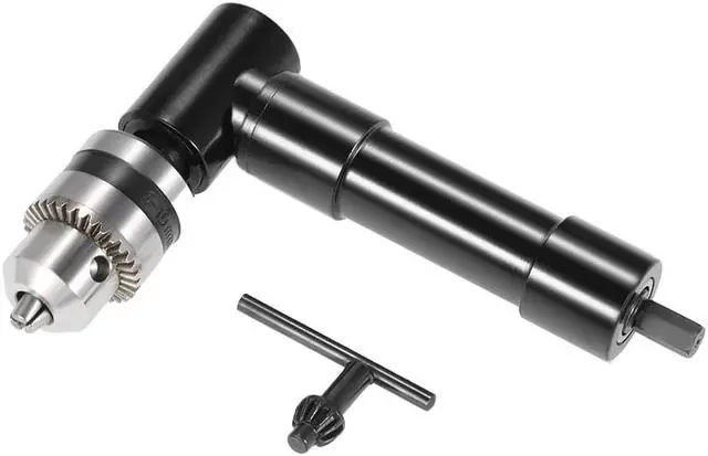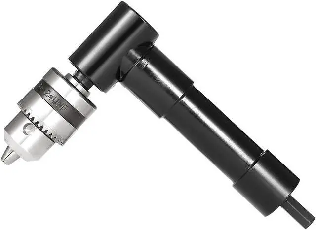 Specifications:Color: BlackMaterial: Aluminum + Tool SteelType: 90Drill AttachmentHex Shank Size: 8mm / 0.31inJaw Chuck Range (Diameter): 1-10mm / 0.039-0.393inMax. Speed: 1500 RPMMax.Torque: 25NmProduct Size: 15.5 * 9.8 * 4cm / 6.10 * 3.86 * 1.57inProduct Weight: 482g / 17oz(With Key)Package Size: 17 * 13 * 4.5cm / 6.69 * 5.12 * 1.77inPackage Weight: 486.5g / 17.17oz Features:Apply aluminum and tool steel, strong & durable.10mm(3/8") chuck, accept 1-10mm drill bits, with a key to tighten/loosen it.8mm hex shank, suits most standard drills, like: hand/power drills, electric drill, buffing attachments etc.1500RPM with 25Nm torque.Simple to install and operate.Make electric drill power swerve 90for hard-reached places.