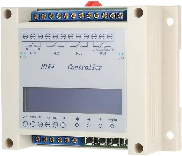Specifications:Timing Range: 0.1s - 9999min AdjustableCycle: 0 - 9999 times AdjustableWorking Power Supply: DC6-40V Four Set of Conversion(normally open and normally closed)Contact Load: 10A/277V AC or 10A/30V DC Contact Resistance: <=100m (1A 6V DC)Mechanical Durability: 10 millionElectricity Durability: >100,000 (10A-250V AC)Operating Temperature: -40~85CItem Size: 11 * 8.5 * 3.7cm / 4.33 * 3.35 * 1.45inItem Weight: 196g / 6.92ozPackage Size: 15 * 9.5 * 5cm / 5.91 * 3.74 * 1.97inPackage Weight: 248g / 8.76oz Features:Industrial LCD display, 4 keys for easy operation, with reset function.High performance microcontroller for high stability, high reliability and low power consumption.Reverse power protection function, avoiding surge current shock.Four-channel time relay, each channel has common, normally open and normally closed contacts, 4 sets of conversion.99 groups of time(steps) for setting, adjustable timing range: 0.1 second to 9999 minutes(countdown).4 channels in each step can be set in cycle or release state; the total number of Loops is adjustable from 0 to 9999(zero for the infinite loop).Each step can be set in forward cycle to run for 0-999 times, supporting 20 layers of nesting loops.Allowing external input of high level and low level signals to achieve trigger function and waiting input to run, jumping to another step ,stopping running functions.User can set password to prevent others to change the setting parameters.All setting parameters can be saved after power off.