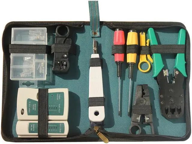 BrandWLXY ColorBluish green Quantity1 FeaturesStripping cable / make Ethernet connector / Test network cable Packing List1 x Crimping pliers1 x Tester1 x Wire stripping knife1 x Stripping pliers knife1 x Knife1 x Card knife1 x Flat screwdriver1 x Cross screwdriver1 x Box10 x Connectors1 x Bag