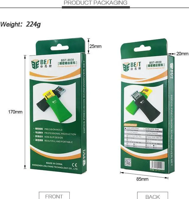 BEST Daily Use Screwdrive Kit 24 Multifunctional Precision Screwdriver Magnetic Bits AL Box Screw Driver Smart Home Set - Green Aluminum Box Aluminum handle Weight : 300 g Brand : BEST With 24 precision head Magnetic absorption head collection