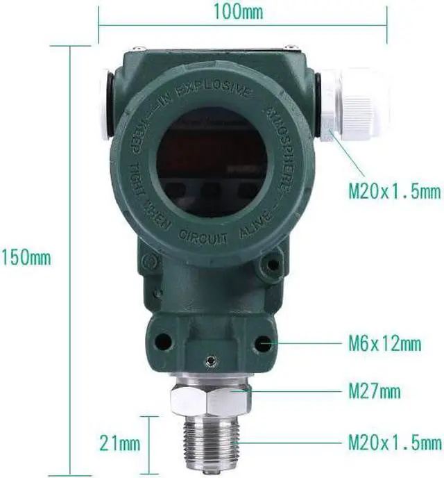 ELE-800S Digital Pressure Transmitter Pressure Sensor 0~1MPA Stainless Steel Product Name: Digital Pressure transmitterAccuracy: 0.5%(0.2% Customizable)Overload ability: 3X rangePower supply:DV24VEnvironment temperature:-30~80Measure range:-0.1~100MpaOutput signal:4~20Ma 0~5vdc 0~10vdcTemperature drift:0.03%FS/Medium temperature:-20~75Measurement Medium: Gas non-corroding stainless steelCommunication protocol: MODBUS-RTU(Need to customize)