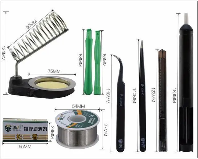 Package size: 299mm*155mm*60mm Made of high quality material and unique human body mechanics design. This set of tool kit bag adopts the oxford cloth fabrics, fine workmanship. 16pcs tool kit can used for most mobile phone, PC, laptop, digital products, glasses repairing. They are the preferred professional maintance and DIY enthusiasts.