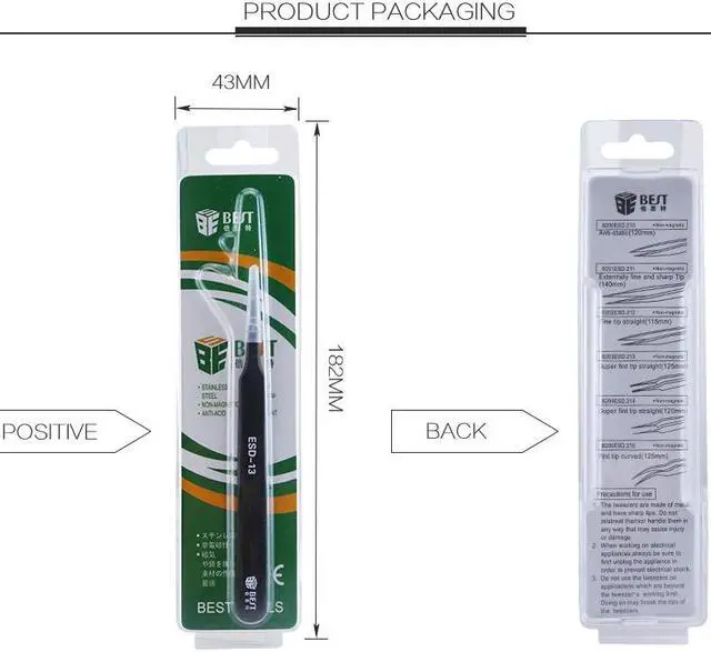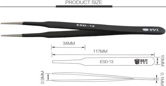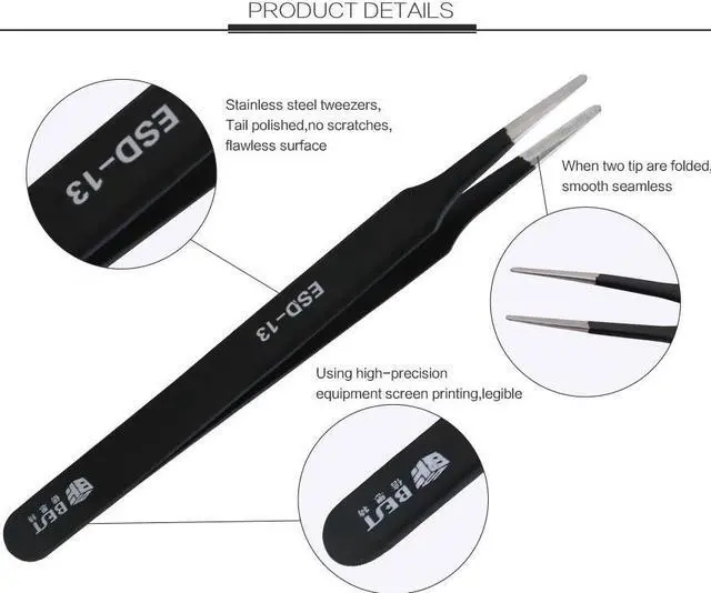 BST-13 Precision Tweezer Antistatic Tweezers Stainless Tweezers Model Pointed Brand Name: BES Model Number: BST-13 Material: Stainless Steel Type: Long Nose DIY Supplies: Electrical