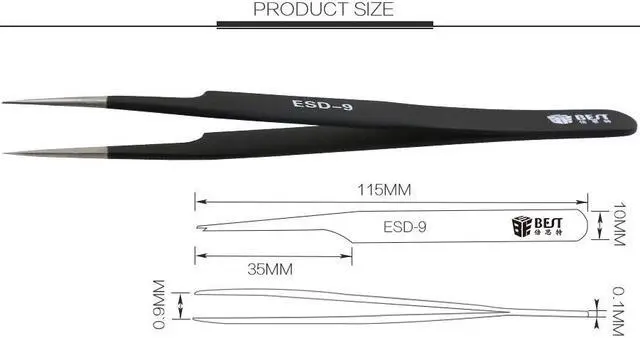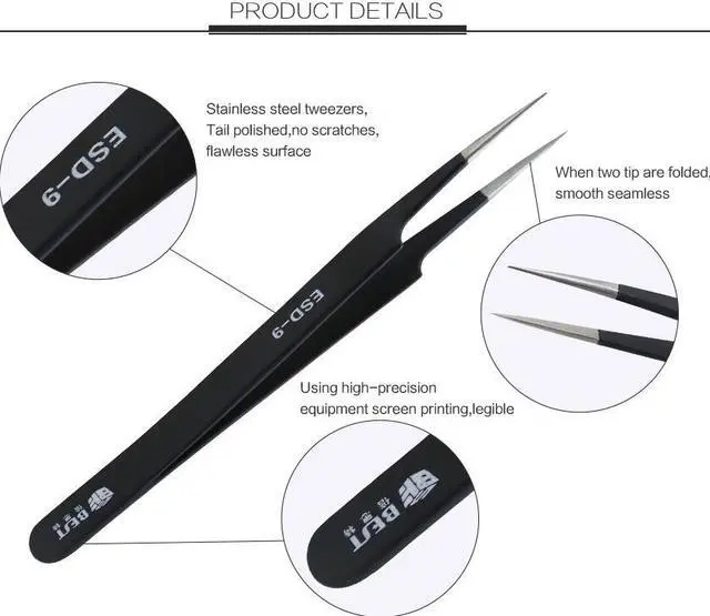 BST-9 Precision Tweezer Antistatic Tweezers Stainless Tweezers Model Pointed Brand Name: BES DIY Supplies: Electrical Model Number: BST-9 Material: Stainless Steel Type: Long Nose