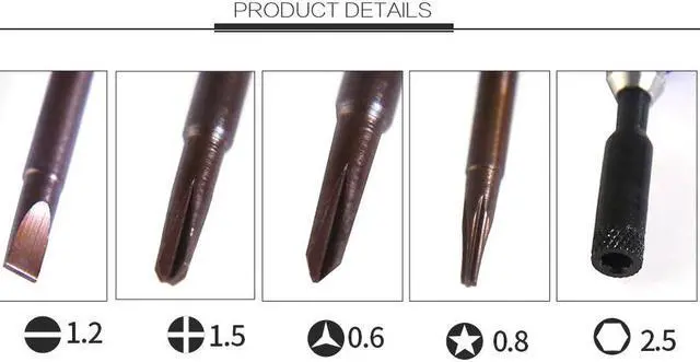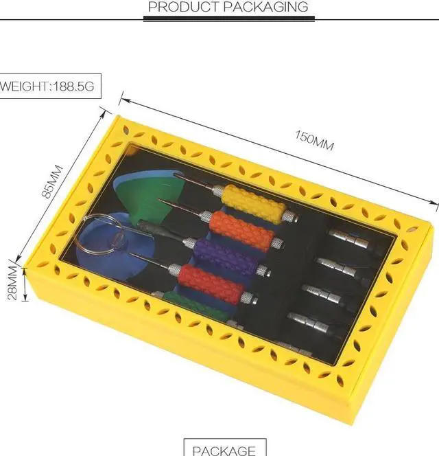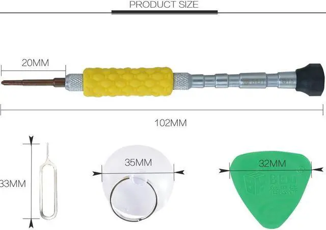 Model:BST-669S 8 in 1 Screwdriver Set Size:150*85*28mm Weight:188.5g Material of screw head:S2 steel Rod made of aluminum alloy material, anti allergy and anti oxidation. Bits made of S2 metal material, high hardness and easy to operate. Designed for iphone7, meet all of your maintenance requirements.