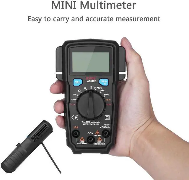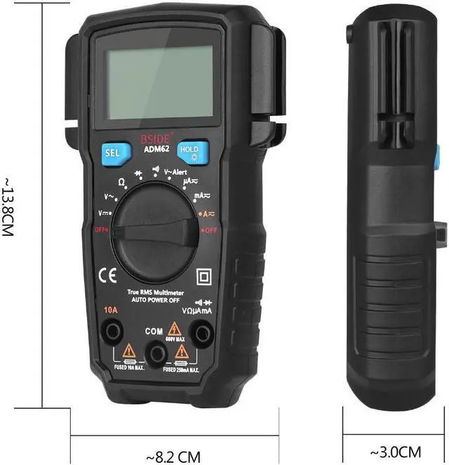 Features: Digital TRMS multimeter Unique dual test lead slot design means new fixed style, unsheathed-type for handsfree measurement, sheathed-type for safe storage Measure DC/AC current not only in mA/A mode, but aslo in uA mode AC/DC voltage, v-alert, resistance, diode, continuity measurement Large LCD with backlight for simple reading Auto range, data hold, Auto power off, polarity and low battery indication Widely reserved in schools, automotive maintenance, factories, etc. Ideal for home users, maintenance enthusiasts, electricians and technicians