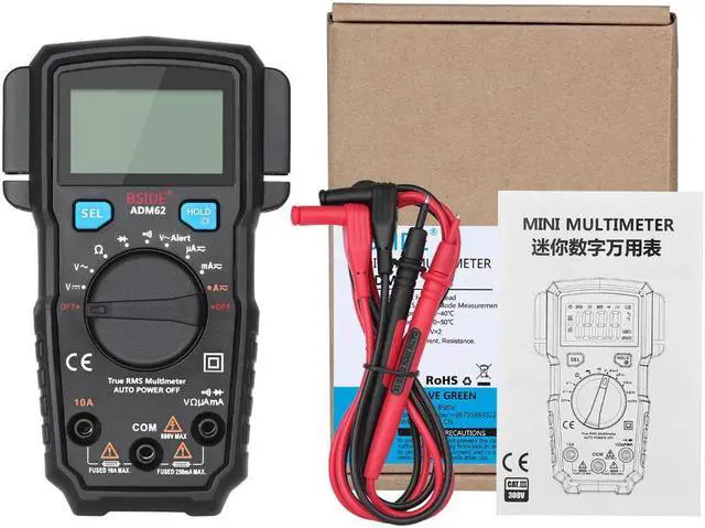 Package Includes: 1 * Digital Multimeter 1 * CAT III 600V Test Leads 1 * User Manual