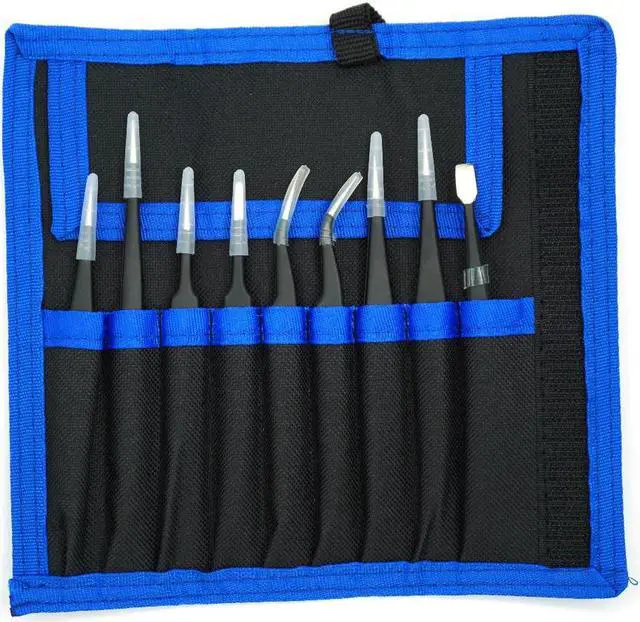 Features - Material: Stainless Steel. - Size: as photo showed(1-3mm random error ) - 100% brand new and high quality Anti-static Stainless Steel Precise Tweezers Repair Tools. - Antistatic, Anti-magnetic and anti-acid. - Pure manual polishing on the edge, fine workmanship. - Good quality will not easy broken. - Precision machining, professional used for SMD, chip, jewelry, eyelash extension,electronic repairing, leather work ect. EDS-10, EDS-11, EDS-12, EDS-14, EDS-16 straight tip: can work with welding integrated circuit chip, or install replacement parts. suitable for small space replacement of precision components. EDS-13 flat round head: not easy to damage devices, suitable to extract chips, circuit chips and other small parts from narrow space. EDS-15 45curved tip: suitable for precision operation and extraction in narrow space. EDS-17 30curved tip: suitable for precision operation and extraction in narrow space. EDS34A-sa flat head: flat head tweezers with better hardness, suitable to clamp components , help processing components pins, and do some simple forming work. package Included: 1x 9pcs High quality tweezers