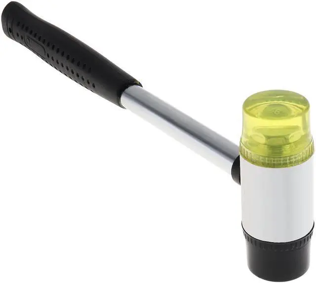 30mm Rubber Hammer Double Faced Work Glazing Window Nylon Hammer with Round Head and Non-slip Handle DIY Hand Tool Features: - The part of yellow hammer head was use of polyurethane material, soft and translucent. Black part was use of high-quality steel, resistant to tapping, anti-slip, anti-oil, hammer can be replaced to meet your different demands. - Handle made of steel, with ergonomic design, comfort grip, suitable for prolonged use. - Rubber non-slip handle with steel material, oil-proof, durable knock.Type: Rubber Mounting HammerColor: BlackHandle Material: SteelHead Material: Rubber / NylonHammer Head Diameter: 30mmHammer Handle Length: 230mmQuantity: 1pcs Package Weight : 260 G / 9.17 Ounces Package Dimensions (L*W*H) : 260*80*30 MM / 10.24*3.15*1.18 Inches Retail Packaging: Yes, General Box