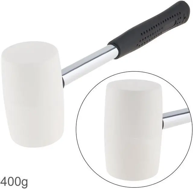 470g Non-elastic White Rubber Hammer Mounting hammer with Round Head and Non-slip Handle DIY Hand Tool Features: - The head is made of non-elastic rubber, which is more effortless and more wear-resistant. - The handle is ergonomic, comfortable to hold and suitable for extended use. - Rubber non-slip handle with steel material, oil-proof, durable knock.Type: Rubber Mounting HammerColor: White and BlackHandle Material: Rubber + SteelHead Material: RubberQuantity: 1pcs Package Weight : 470 G / 16.58 Ounces Package Dimensions (L*W*H) : 300*100*55 MM / 11.81*3.94*2.17 Inches Retail Packaging: Yes, General Box