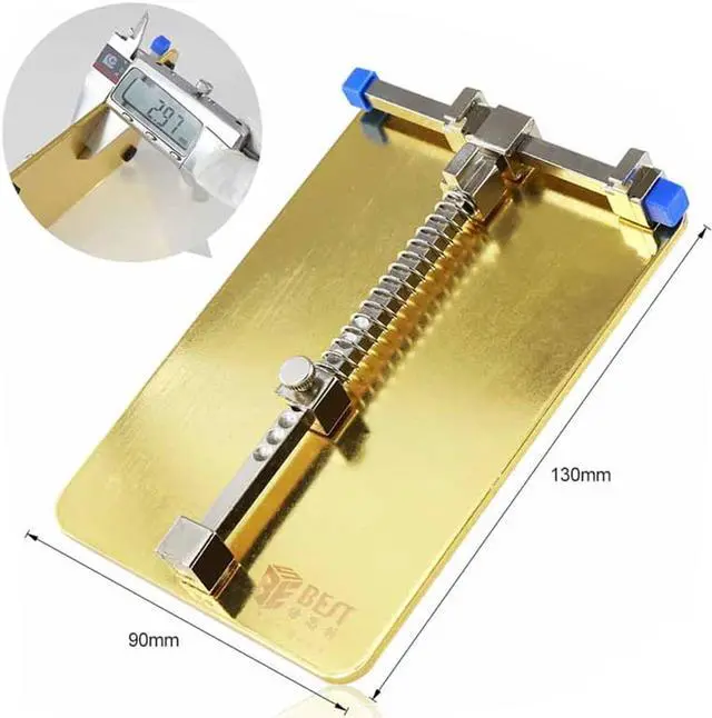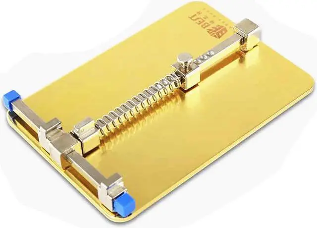Main FeaturesMaterial: chrome vanadium steelSuitable for maintenance of electronic products, fixedUniversal holder for mobile phone repair. Adjustable clips and fastening screw. Mounted circuit board, the first side of the circuit board into the card with a spring mouth, pushed back and then another circuit board into the activities card block fixing screws can work