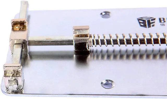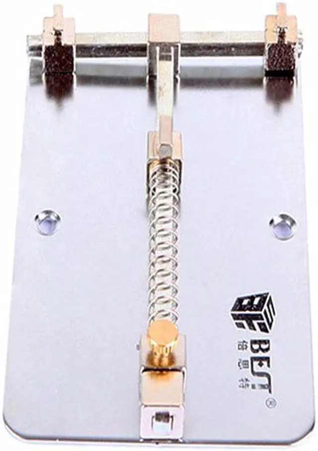 Material:carbon steelSize: 8*12cmType: FixtureFeatures:Simple operation, precision screw positioning.Three pieces bayonet can be moved, you can choose the best position to holder your circuit board.You can stop the PCB holder in your table when you are removing the BGA IC.When you install your circuit board to the holder, it is better to install one side then the other side.