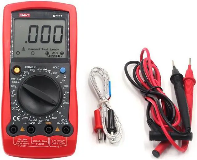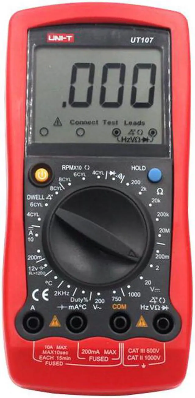 Features 1. 12V Low battery indication, duty cycle 2. Input notification for reducting misplugging risks 3. Low battery indication, over-range display 4. Data hold; diode/continuity buzzer 5.