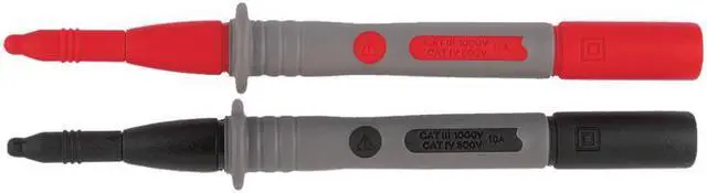 Specifications: Rod length 99mm, probe length 18mm Safety rating: CAT 1000V/CAT 600V 10A Features: Fully-insulated, with tip and protector, lantern type probes Qty: 1 pair