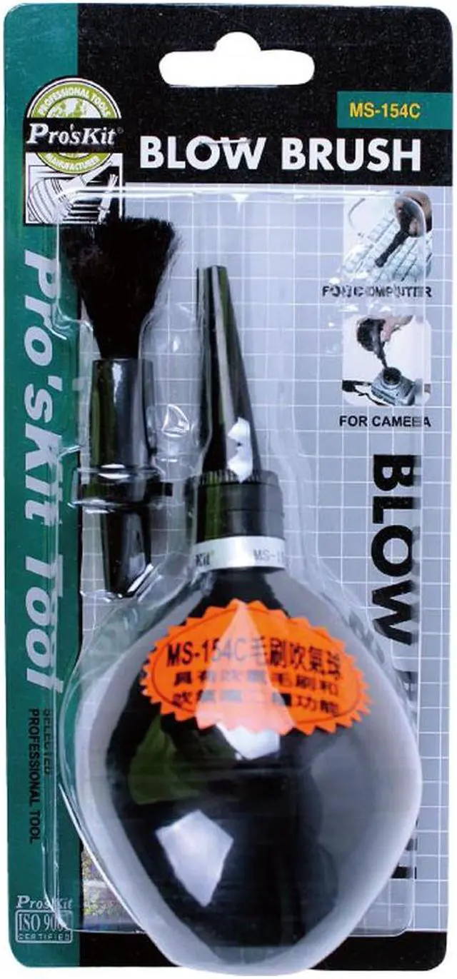 Pro'sKit MS-154C Dust Removal Blow Brush Kit Ball Blower for Camera Lens Clean air blowing effectively clears. Ideal for blowing hard-to-reach area.