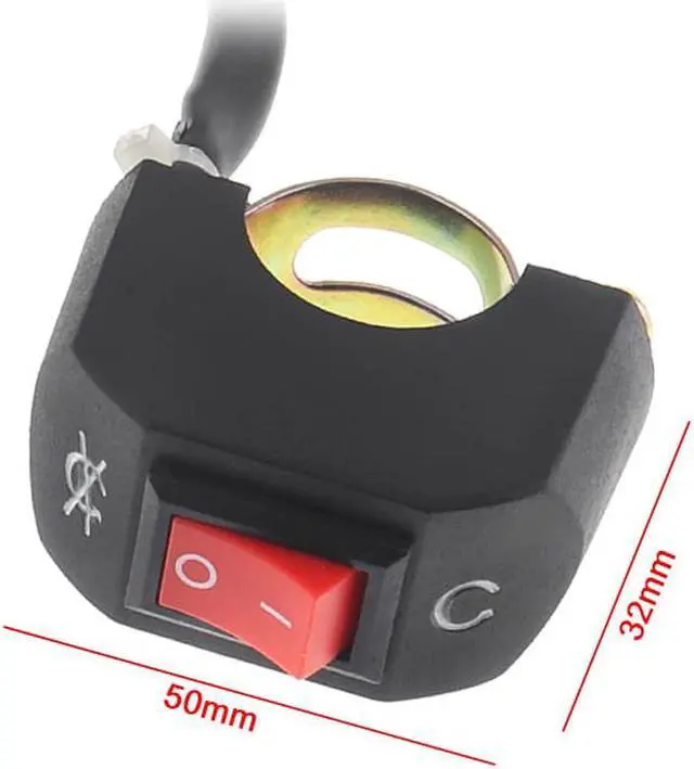 22MM Waterproof Universal Black Steering Wheel Flameout Switch for Motorcycles / Scooters Specifications: Name : Motorcycle switch Applicable Models : Motorcycles / scooters Material : Plastic Color : Black + red Line Length : 63CM Features : - Stable performance and high reliability - Easy to install and replace - 22MM internal standard car with internal diameter - Beautiful appearance Note: - Inner diameter 22MM , support installed on 22MM tube - Please check the size before purchase - This is an updated part, if the size is available, universal fits most motorcycles Package Weight : 40 G / 1.41 Ounces Package Dimensions (L*W*H) : 115*50*25 MM / 4.53*1.97*0.98 Inches Retail Packaging: Yes, General Box