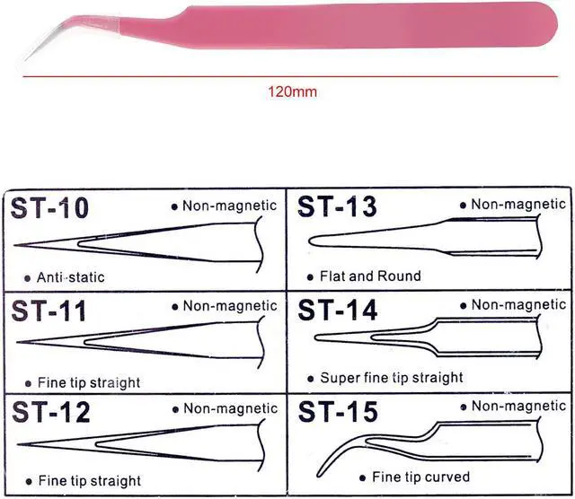 120mm Stainless Steel Tweezer Anti-static Curved Tip Forceps Precision Soldering Electronic Tweezers Tool Specifications: Name:Tweezer Material: Stainless steel Color: Pink Thickness:1.5mm Length:120mm Note: Should be placed out of reach of young children. Features: -Good strength, non-magnetic material, flexible, long-term use of fingers will not fatigue, convenient, safe, bendable, durable -Reasonable design in accordance with finger size, more comfortable to use. Application -Can be used in Nail / mobile phone stickers drilling, modeling and fixed a variety of small components need to be bonded. Package Weight : 27 G / 0.95 Ounces Package Dimensions (L*W*H) : 120*10*3 MM / 4.72*0.39*0.12 Inches Retail Packaging: No, No Packing