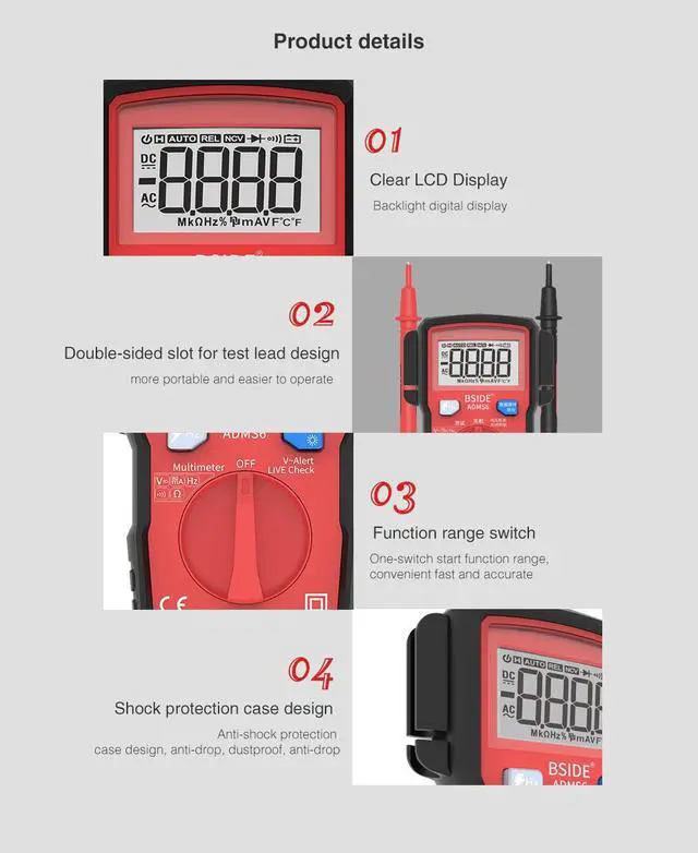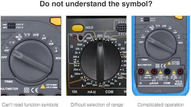 Description This multimeter has an intelligent identification function at full-range and can be measured with true RMS Main Features LCD display, make you easily get the symbol with this multimeter Full range overload protection Two grades dangerous voltage alarm is safer Maximum voltage allowed at the measuring end: 600V DC, 600V