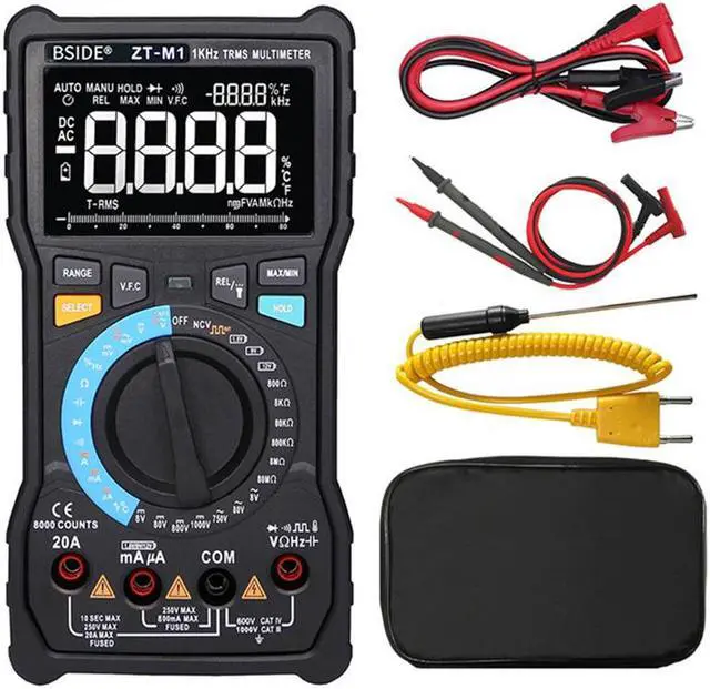 Current (mA): 8.000 mA/ 80.00 mA/ 800.0 mA ( 1.5 %+3) AC Current (A) 800.0A /8000A ( 1.5 %+3)