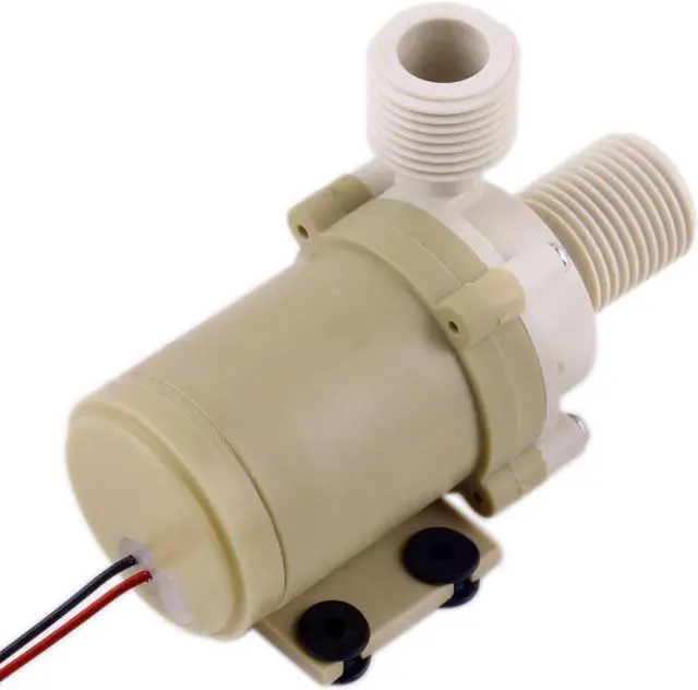 Specifications:Inlet/Outlet: 1/2" male thead. Fit both 1/2" NPT and BSP female theadMax Flow Rate: 6.5 L/MinMax Water Head: 3 metre(9.8ft)Max system pressure: 10BarMax circulating water temperature: 100C/212F. Can't be immersed in 100C/212F hot waterLow noise: 30db at 1 metreDimension:93 x 45 x 63 mmWeight:258 gPackage weight:288g Features:DC 12V Hot/Cooling Water Circulation pumpIf you use it 24 hours a day, it can last for 4 yearsEasy installationMax operating temperature up to 100C with External circulating water flowSuper long working lifelow consumption & low noiseAmphibious designSubmersible installation and entirely waterproofThe pump is perfect for the family home thermal solar systems or any circulation pump application where conventional power is not available