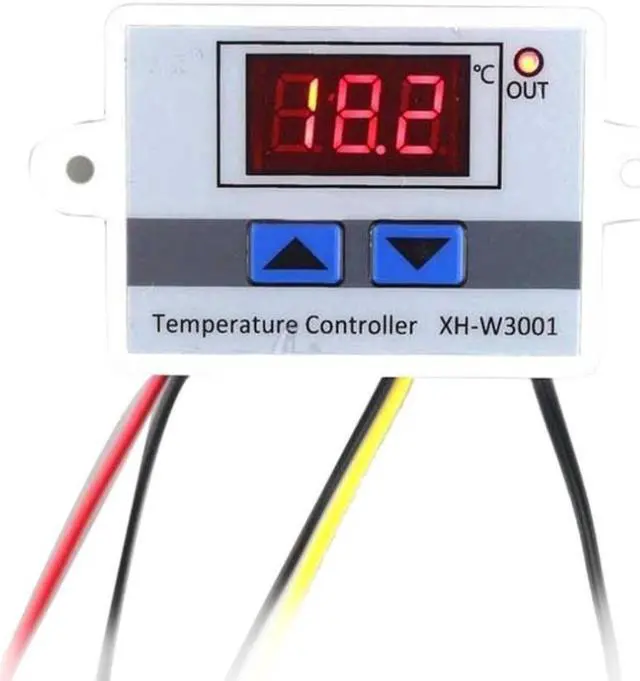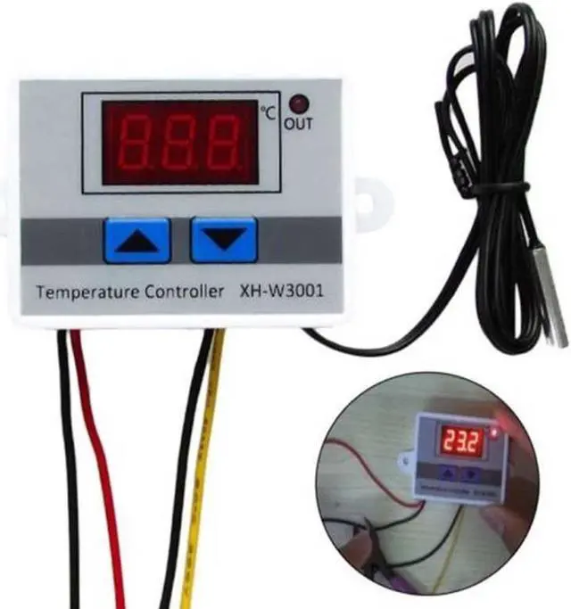 Specifications:Size: 6*4.5*3.1cmColor: White Material: ABS Power Supply: 24VTemperature Measurement Range: -50~110Temperature Control Range: -50~110Temperature Control Precision: 0.1 Features:This advanced device is for controlling temperature in aquariums.Use in seafood machines, terrarium, vivarium, chicken incubator, etcWide temperature control range.Dual heating and cooling function.Temperature measurement function.Large and clear LCD display.Mini and light weight design.Easy to install, simple operation. Descriptions:Press UP button to show the starting temperature.Long press UP button the temperature to display flashing.Press UP/Down button to set the temperature value.Press Down button to show the stop temperature.