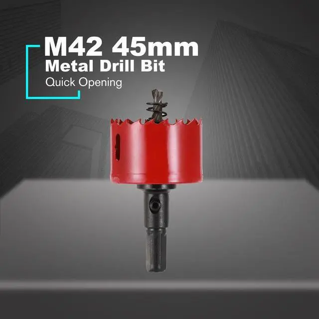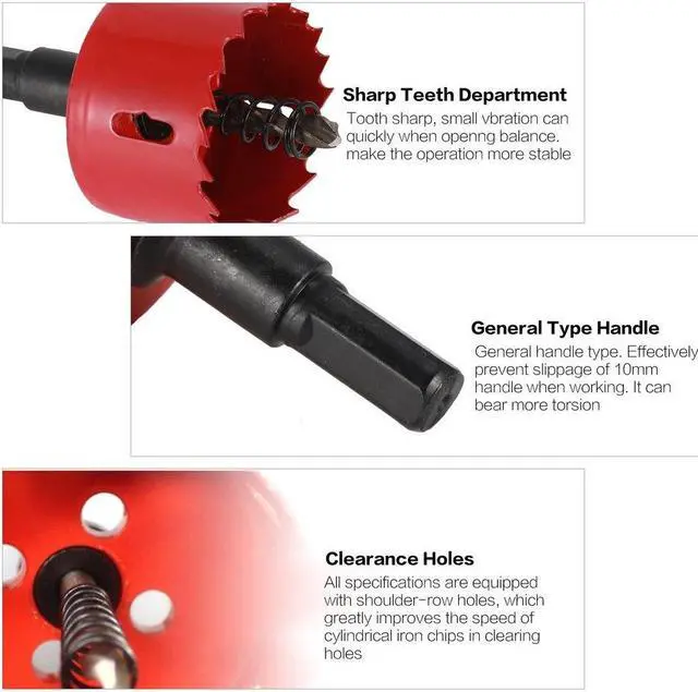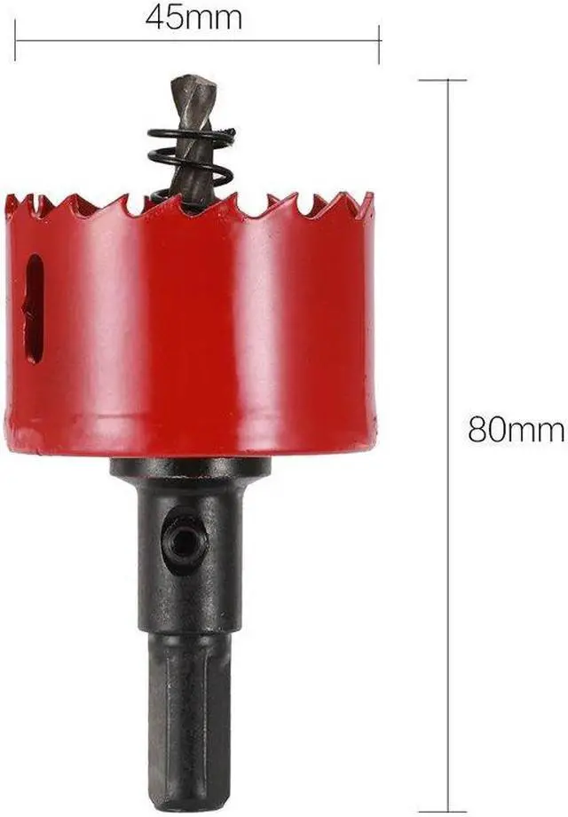 Specifications:Name: Double Metal OpenerColor:redMaterial: MetalDrill hole diameter:45mmQuantity: 1pcs Size:80x45x45mmItem weight:128g Package information:Package size: 115x60x50mmPackage weight:135gBlister package Features:1.Tooth sharp, small vbration can quickly when openng balance. make the operation more stable.2.General handle type. Effectively prevent slippage of 10mm handle when working. It can bear more torsion.3.All specifications are equipped with shoulder-row holes, which greatly improves the speed of cylindrical iron chips in clearing holes.4.Fast opening speed,high quality durable.5.Usage: Opening operation of plastic sheet, various kinds of wood, gypsum board, etc.Descriptions:1.Easy to operate and install. 2.Fast opening speed,high quality durable.3.Usage: Opening operation of plastic sheet, various kinds of wood, gypsum board, etc.