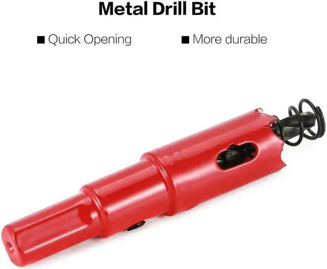 Specifications:Name: Double Metal OpenerColor:redMaterial: MetalDrill hole diameter:16mmQuantity: 1pcs Size:80x16x16mmItem weight: 47g Package information:Package size: 105x45x30mmPackage weight: 51gBlister package Features:1.Tooth sharp, small vbration can quickly when openng balance. make the operation more stable.2.General handle type. Effectively prevent slippage of 10mm handle when working. It can bear more torsion.3.All specifications are equipped with shoulder-row holes, which greatly improves the speed of cylindrical iron chips in clearing holes.4.Fast opening speed,high quality durable.5.Usage: Opening operation of plastic sheet, various kinds of wood, gypsum board, etc.Descriptions:1.Easy to operate and install. 2.Fast opening speed,high quality durable.3.Usage: Opening operation of plastic sheet, various kinds of wood, gypsum board, etc.