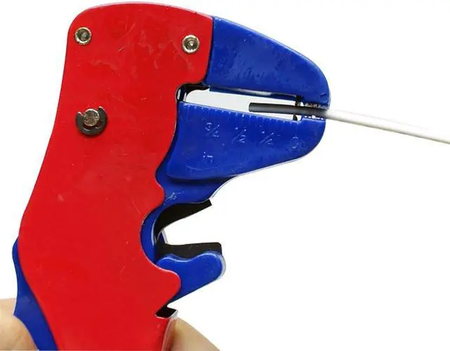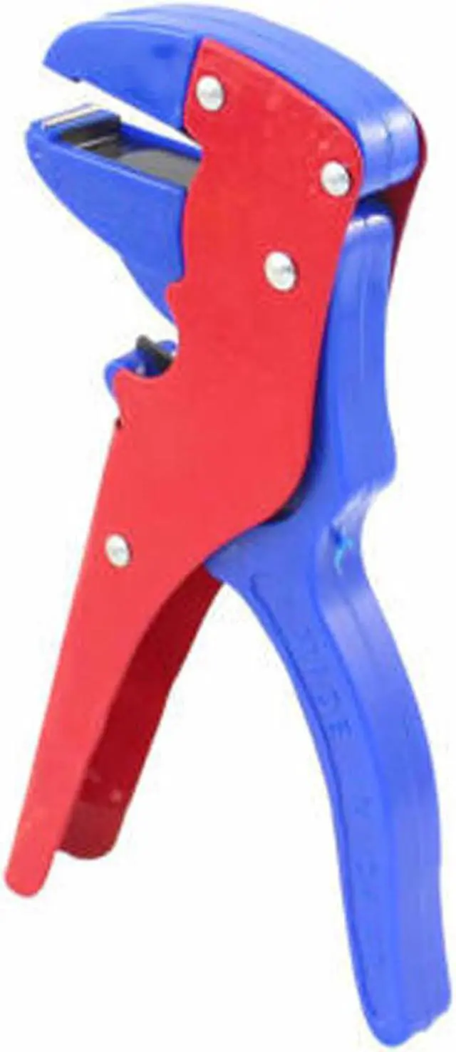 Cable Wire Stripper Self Adjusting Crimper Stripping Cutter For Hand Tools 2. Type : Duckbill Stripper3. Material: High-carbon Steel4. Size: 7cmx13.5cm/2.76"x5.31"5. Color: Blue + Red6. Self adjustive on damage to the inner score7. Two kinds of unit of measure, one side is "mm", on the other side is "inch"8. Automatic wire stripper cutter plier,For single or multiple cables section 0.2-3mm2