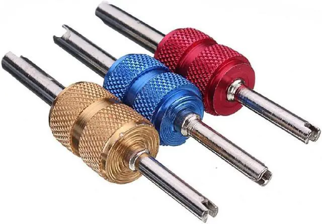 2 Sides Universal 45 # Steel Tire Valve Stem Core Remover Screwdriver Tire Repair Install Tool - 3Pcs 1. Type : Installer Remover Tool2. Material: 45 # Steel3. Size: 1.5mm4. 2Sides Universal Valve Core Installer/Remover Tool.5. Double ended for easy replacement of standard and large bore valve cores for R12,Standard and JRA (M6) EATON (M8 , M10) valve cores for R134A.