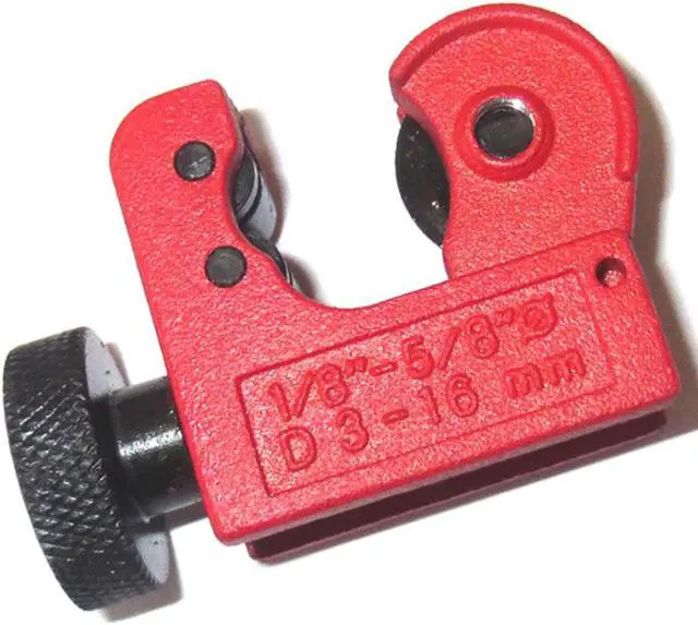 Mini Tube Cutter Cutting Tool For 3mm-16 mm Copper Brass Aluminium Plastic Pipes 2. Type Pipe cutter3. Material: Zinc alloy4.Cut diameter range 3-16 mm5. Color: Red6. Small size for use in tight spaces7. It will cut copper brass aluminium and plastic pipes8. They are perfect for cutting tubes made of Zinc alloy. This is a must have for your home handy man, plumbers, electricians, and vehicle mechanics
