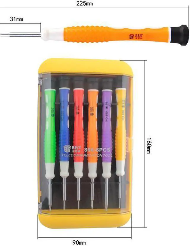 6 in 1 Mini Precision Pocket Screwdriver Set Hands Repair Tools Set For Cell Phone PC BEST-886B Description Nuts can quickly dial, improve work effciency. Chrome vanadium steel is chrome vanadium alloy tool steel alloying elements, heat treatment above 60HRC hardness, good wear resistance. Detachable iphone Blackberry, Nokia, Samsung, Motorola, millet HTC, Huawei, ZTE Lenovo and other brand mobile phone and camers MP3 MP4 MP5 and other small digital products.