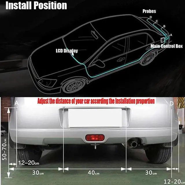 Waterproof Intelligent Parking Assistance System with 4 Parking Sensors and LCD Display Monitor - Black Specifications: Model: PZ312-X 4 Parking Sensor Display Screen: 1.8" screen Alert Type: Beep alert Alarm Volume: 70 - 85dB (30cm) Operation Voltage: DC 12V Power Consumption: < 2.5W Operation Temperature: -40 + 80C Detection Distance: 0.3 - 2M (3M) Alarm Distance: 0.3 - 1.5M (2M) Error Range: <1cm Working Frequency: 40 KHz Current Consumption: 20mA - 200mA Dimensions: - Rear Sensor Cable Length: 2.5 meters - Display Monitor: 75mm x 54mm x 18mm - Sensor Size: 22 x 20mm Display Monitor Feature: - With 4 car parking sensor, protecting your vehicles and cars omnibearing - With a display monitor, Support real time response and detailed reversing information displaying on the LCD display screen - Easy to install, compatible with any vehicle - Support weatherproof, can works in the rain and snows - System automatically activates when reverse gear is engaged - Set-up alarm, Support beep alert or via the color of the display screen - Dual CPU system - With intelligent anti-interference analysis - Intelligent control of dual CPU microcomputers, originated from military technology, is accurate and reliable. - The patch motherboard is beautiful and neat, and the failure rate is less than 0.05%. - With imported chips, the speed is faster and more accurate. - The residual vibration elimination technology can reduce the false alarm rate. - With power protection function for wrong connection Hole Saw Opener Feature: - 22mm concave design, no water accumulation, unique design to prevent ultrasonic detection to the ground and false alarm. - Ceramic material crystal vibration, longer life. - Anti-interference wire, not disturbed by the original vehicle signal. - Beer head design, easy to plug, long life. - Waterproof wire is optional and easy to install. - The probe is mounted in embedded mode, and the sensor with multi-color configuration is exquisite and compact. This product work like this, when you parking your car ahead: - Press on the brake, the front parking sensor start to wrok - If there is no barrier or road block, the sensor is at the status of sleeping. The display will not start to work avoided the affect to driving safety. - If there is a roadblock, the sensor will start to work, if reach the alarm distance, it will start to alarm. when you parking your car reverse: - Start to reverse your car, the backup sensor will start to work, and two side of front sensor will start to work at the same time, just avoid damage to front side. - If there is a roadblock, the sensor will start to work, if reach the alarm distance, it will start to alarm. - If there is no barrier, the alarm is at the status of mute. Package Weight : 457 G / 16.12 Ounces Package Dimensions (L*W*H) : 275*170*45 MM / 10.83*6.69*1.77 Inches Retail Packaging: Yes, Colored Box