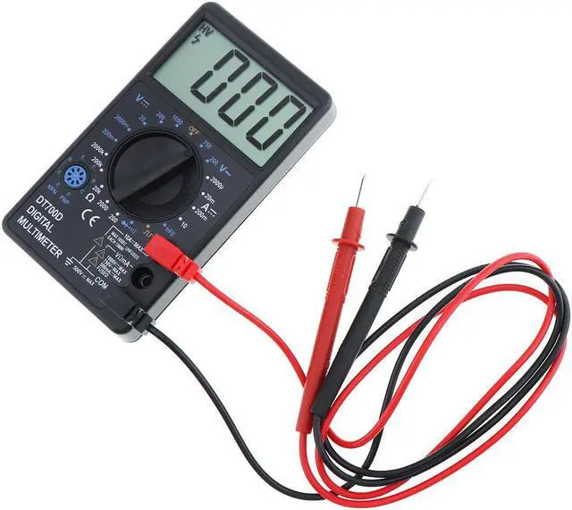 DT700D LCD Digital Multimeter DC AC Voltage Diode Freguency Multitester Features: This Multitester can be used for AC/DC voltage test, DC/AC current test, electric current resistance, hfe (DC amplification) test, Frequency test, two-electrode valve test, NPN PNP transistor test, etc. You can use the Multimeter in more places, such as factory, school lab, home hobby, machine repairing, etc. Digital LCD multimeter, can be used for Ohm AC/DC volt test and overhaul all kinds of circuit boards Auto polarity display/Diode test/Transistor P-N junction test/Transistor HFE test Auto turn off & Data hold function. Display: 1999 counts, updates 2-3/sec Measuring method: Dual-slope integration A/D Converter Operating Environment: 0 to 40 C Power: 9V Battery, NEDA 1604 or 6F22 Type (Iincluded) Fuse Protection: 200mA/250V Measurement Range: 200VmV-600V 0.5% of rdg 2 digits Overload Protection: 250V rms Package Weight : 189 G / 6.67 Ounces Package Dimensions (L*W*H) : 128*70*25 MM / 5.04*2.76*0.98 Inches Retail Packaging: Yes, General Box