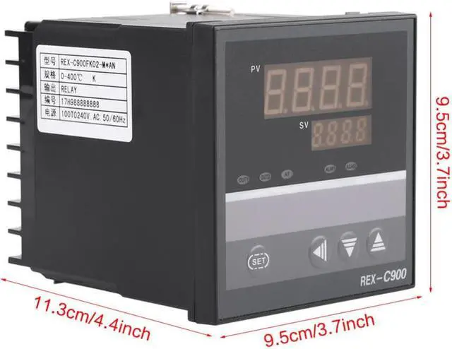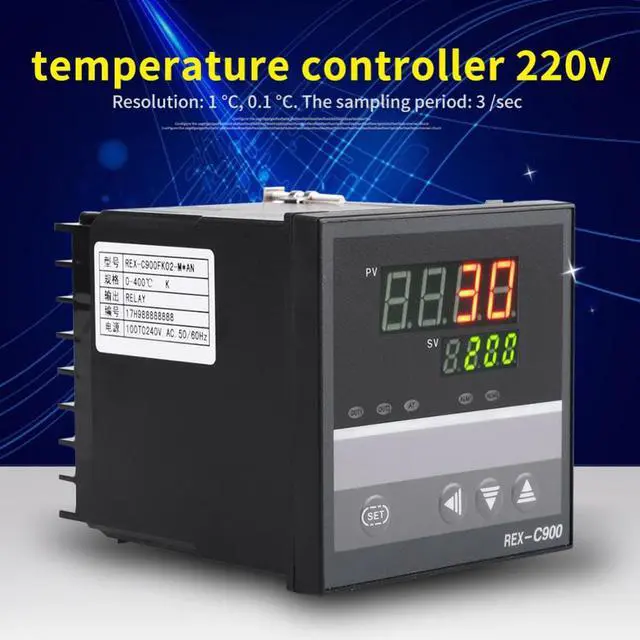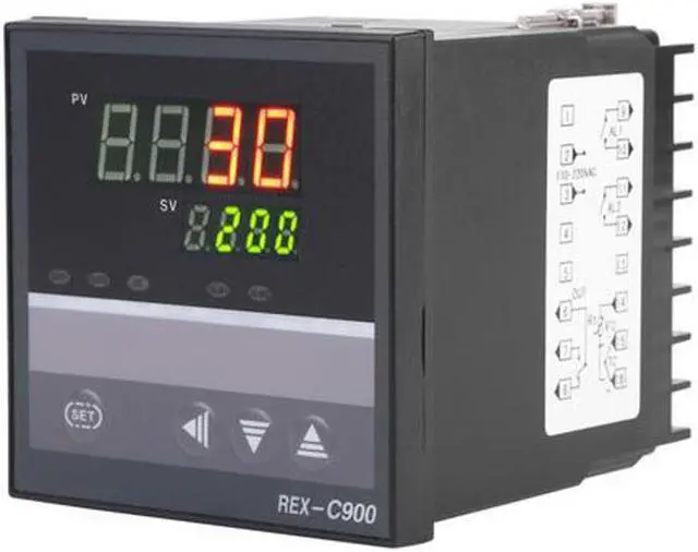 Specifications:Model: REX-C900Controling type: temperatureControling mode: intelligent temperature controllerActual temperature: 0-1300Measurement error: 0.5Output signal: voltage and currentOperating Voltage: AC100-240 VPower supply voltage: AC85-AC264V 50HZMeasurement accuracy: 0.5%FSInput type:Thermocouple(TC) K. J. R. B. E. N. TResistance temperature detector(RTD) PT100. Cu50Working environment: 0-50C, 30-85% RH non-corrosive occasion. Power consumption <10 VA.Quantity: 1pcWeight: 320gHole size: Approx. 95 x 95 x 113mm / 3.7 x 3.7 x 4.4inch Descriotion:REX series intelligent digital temperature control instrument using industrial instrumentation dedicated chip advanced, strong anti-interference ability, at the same time with wide range of switching power supply, products manufactured according to international standard. Fully compatible with performance indicators, product input mode, the control function and installation size and imported intelligent digital temperature controller.REX series intelligent digital temperature controller with fuzzy control, the combination of advanced PID control algorithm, the controlled rapid change and a long lag time can achieve good control. The instrument adopts no overshoot self-tuning scheme is advanced, more convenient to use.Features: High brightness red, green double digital display PV and SV values. A variety of sensor input free (universal input). The accuracy of the meter: input full consumption of 0.5% 1 words. Resolution: 1 C, 0.1 C. The sampling period: 3 /sec. Alarm range: full range set free. A working power supply: AC100V-240V.