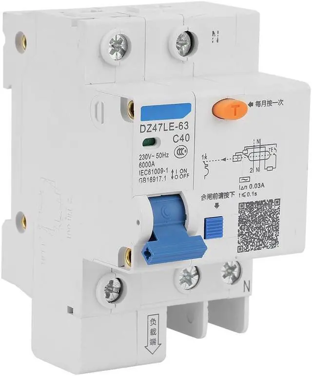 Specification:Model: DZ47LE-63 1P+NBreaking Capacity: 6KARelease Current: 40ARated Voltage: 230VRated Frequency: 50HzLeakage Current: 30MALeakage Action Time: 0.1SRated Impulse Voltage: 230/400Mode of Operation: Hand AutomaticTripping Method: Overcurrent ReleaseProtection Type: Leakage, Overload, Short Circuit ProtectionApplication Scene: Terminal Power DistributionWiring Method: Front WiringUses: Household Leakage ProtectionShell Cover: Opaque Molded Case3C Rated Voltage Range: AC Rated Voltage 1500V and BelowStructure Type: Molded Case Circuit BreakerArc Extinguishing Medium: Air TypePackage Weight: approx.203g Features: Leakage circuit breakers with overload and short circuit protection, can be used to protect circuits against overload and short circuit, can not under normal circumstances as frequent switching of lines available. When someone electric shock or circuit leakage current exceeds a predetermined value, earth leakage circuit breaker can automatically cut off the power supply in a short period of time, to protect the personal safety and to prevent accidents caused by equipment due to the occurrence of leakage current. Suitable for home decoration, engineering construction, rural network transformation and other projects. Environmentally friendly, with good resistance to the moment of force and rust. High segmentation ability and sensitive action.