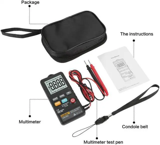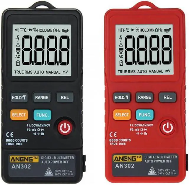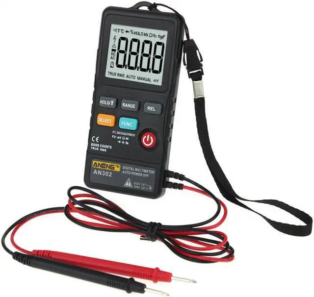 Specification:Brand: ANENGModel: AN302Operation Mode: ManualOperating Temperature:0 - 40 Measuring Current Range: NOMeasuring Inductance Range: NOMeasuring Capacitance Range: 9.999nF / 99.99nF / 999.9nF / 9.999uF / 99.99uF / 999.9uF / 9.999mFMeasuring Resistance Range: 800 / 8K / 80K / 800K / 8M / 80MDC Voltage: 80mV / 800mV / 8V / 80V / 600VAC Voltage: 80mV / 800mV / 8V / 800V / 600VDIY Supplies: ElectricalDisplay Type: Digital DisplayDisplay:8000 Counts Ture RMSBuzzer: YesNCV: YesDiode: YesContinuity: YesBacklight: NOFrequency response at AC mode: 40Hz-1kHzUse battery: 1x 3V CR2032 (Battery NOT included)Size: Approx. 118 x 53mm / 4.6 x 2.1inchWeight: Approx.109g / 3.8oz The digital multimeter is a powerful, dependable tool that safely measures voltage and resistance, whether you are working around the house or for some automotive maintenance. Safely tackle many electrical problems around your home with this powerful multimeter, and you don't have to be an electrician to use this multimeter.Features: Designed to safely and accurately troubleshoot a variety of automotive and household electrical problems. The multimeter uses a CR2032 3V battery (not included) as power supply. Its large 4 digit display provides accurate, easy-to-read results that enable you to complete your work quickly and efficiently. Voltage testing function can test both AC and DC voltage. Supports resistance testing, diode testing, continuity testing, buzzer, etc.