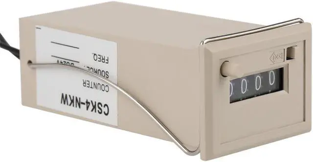 Specifications:Model: CSK4-NKWMaterial: Plastic, Electronic Parts, MetalCount range: 0-9999Voltage: DC 24VRange of voltage fluctuation: 10%Count speed: DC20 times/SecIndication error: < 1x 0.00001.Environment temperature: - 20 to 50 Relative temperature: 85%Power: DC 1.5WReset mode: Pressing type (Interlocking)Installation: panel typeSize: 7 * 4 * 3cm / 2.76 * 1.57 * 1.18inchWeight: 116g Descriptions:This product is used in recording cumulative total of the number of times of electronic pulse signal. Widely used in various electric pulse counts in oil, chemical, textile, machinery, mining, national defense, agriculture, food, printing and other industries.Features: This product is used in recording cumulative total of the number of times of electronic pulse signal. Combined with secondary instrument,it will be digital display instrument. Widely used in various electric pulse counts in oil, chemical, textile, machinery, mining, national defense, agriculture, food, printing and other industries. After input the electric signal to the counter, produce the suction in electromagnet in order to let gag bit spur escapement mechanism then spur the digital rotate cycling calculating in decimal scaler. It will generate attractive power in the electromagnet after the electrical signal input to the counter.