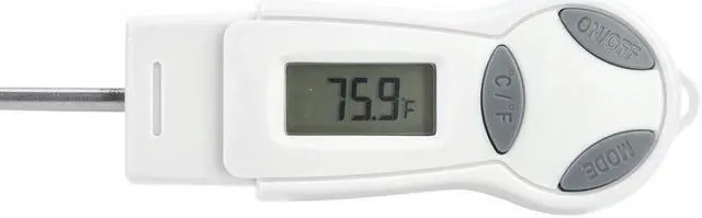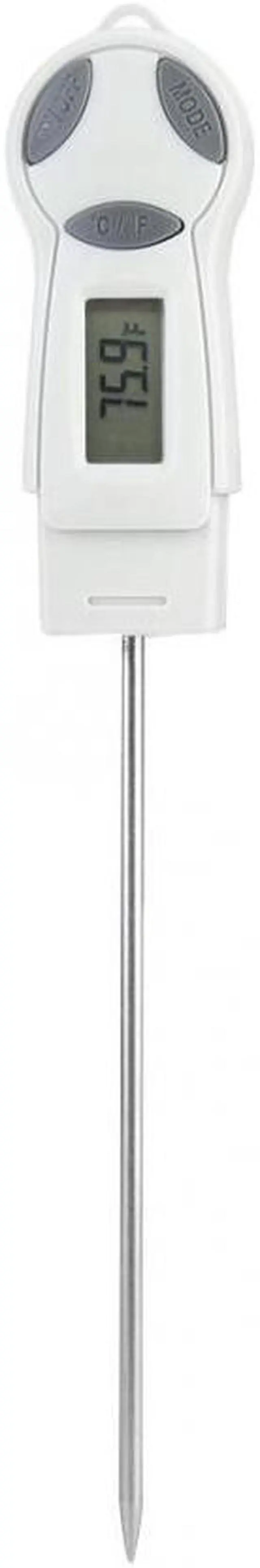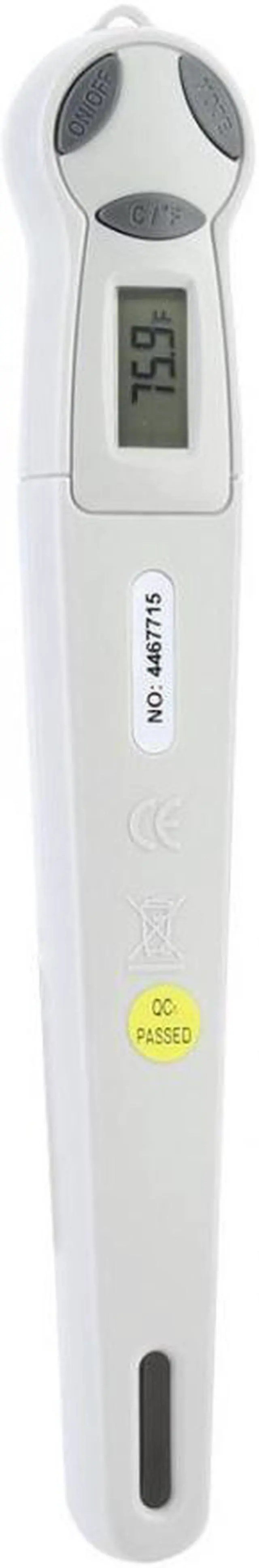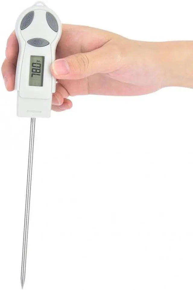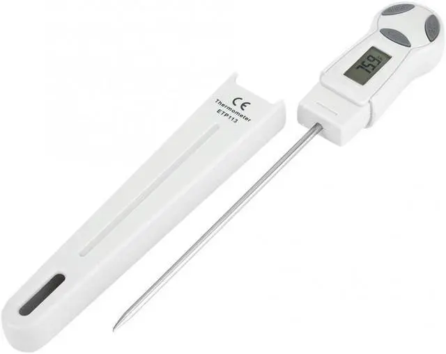 Specification:Fahrenheit Temperature: -40~ 482Operating Temperature: 0(32) ~ 50(122)Battery : 1.5V, LR44 (not included)Accuracy specifications take the form of :(% of Reading+number of Least Significant Digits) Range AccuracyCelsius-40~ 0 (2%+20)0.1~ 99.9 (2%+10)100~ 199.9 (2%+20)200~ 250 (3%+2)Fahrenheit-40~ 32 (2%+20)32.1~ 199.9 (2%+10)200~ 482 (3%+2) This thermometer is a high- electronic thermometer with a stainless steel probe. It has several functions, two units selected to measure celcius/fahrenherit, /min memory and data retention. The device is suitable for laboratory applications, cooking food at a temperature (boiling T), as well as for monitoringFeatures: Digital instant read thermometer with probe for kitchen chef grill The power supply is supplied by 1 piece of 1.5v, LR44 or equivalent power supply. This thermometer is a high- electronic thermometer with a stainless steel probe. It has centigrade/Fahrenheit measurements, maximum/minimum memory and data retention. Portable size, easy to carry and use in daily life. It can be used in industry, laboratory, food temperature testing and monitoring, as well as cooking (such as checking the temperature of boiled food, baby milk, etc.). Measuring range: Celsius ranges from - 40to 250, Fahrenheit temperature range from -40to 482. Auto power off: if you do not press any button for about 20 minutes, the thermometer will automatically turn off. Out-of-range indication:If the measured temperature higher than 250, screen will show "H- -".If measured temperature is lower than to 40, the screen will show "L - -"