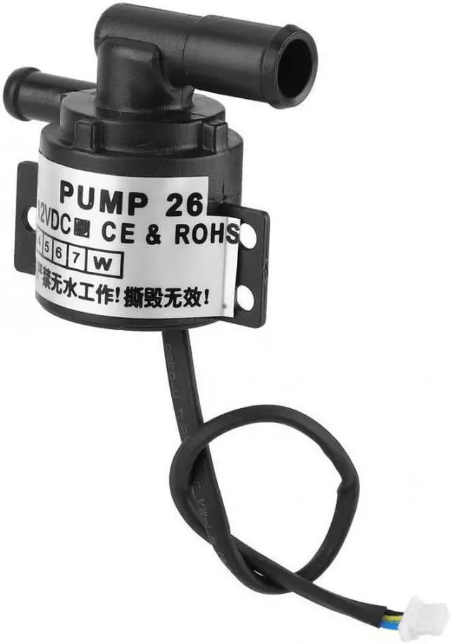 Specification:Model: 26-03Material: ABS.Voltage: 12 vPower: 3 wPerformance: high temperature resistancePurpose: cooling pumpFlow rate: 2L/ min (m3/h)Head of delivery : 1 mDriving mode: electricImpeller suction: single suction type Features: Made of engineering plastic, which makes this mini DC pump to work for a long time. It's a three-phase built-in controller,to dissipate high heat quietly with no noise. DC 12V high voltage makes heat dissipation super fast. Large water flow up to 32L/min enable this DC water pump to dissipate computer high heat so fast. Supports high head of delivery up to 1m.