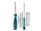 Specifications:Material: Chrome Vanadium SteelScrew Head Type: Cross, Slot, Five Point StarMagnetic: YesHandle Material: PPBig Handle Length: Approx. 125mm / 4.92inchBig Handle Diameter: Approx. 33mm / 1.3inchSmall Handle Length: Approx. 108mm / 4.25inchSmall Handle Diameter: Approx. 18mm / 0.71inchSize: H6.3 x 140mm x PH1/SL4, H6.3 x 140mm x PH1/SL5, H6.3 x 140mm x PH2/SL6, H6.3 x 70mm x PH2/SL6 H4 x 125mm x PH0/SL3, H4 x 125mm x PH00/SL2, H4 x 120mm x PH000/SL1.5Five Point Star Rod Size: H4 x 120mm x 0.8, H4 x 120mm x 1.2Weight: Approx. 312g Features:1. Size print on each bar, convenient to look for to use.2. The rear center hole is inserted into the arbor and can be converted to T-type screwdriver to solve stubborn screws.3. Made of chrome-vanadium steel, rust proof, durable and easy to use.4. Contains magnetic tips, conveniently attracts screws.5. Packing roll bag is made of high quality oxford cloth, easy to take and look for in operation.6. Big handle used for most home appliances, small and medium mechanical maintenance.7. Small handle used for small electronic product maintenance and disassembly, such as mobile phone, Pad, etc.