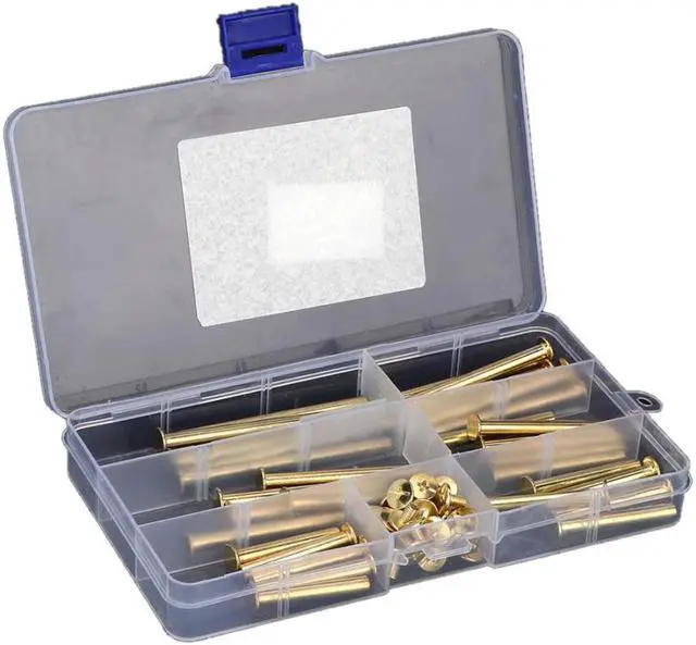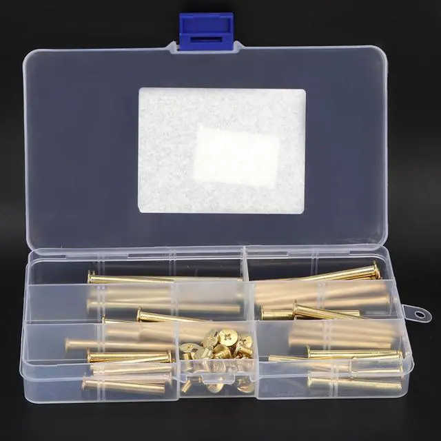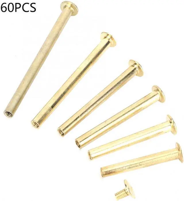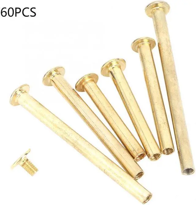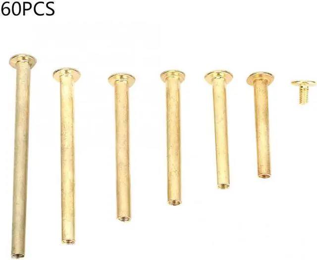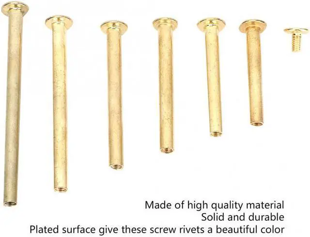 Specification:Item Type: Album Screw RivetMaterial: Carbon Steel Brass PlatingQuantity: 60pcsWeight: 295g / 10.4ozPackage List:5 * M5*35mm5 * M5*40mm5 * M5*45mm5 * M5*50mm5 * M5*60mm5 * M5*70mm30 * M5 Screws Features:1. Made of high quality material, these screws and rivets are durable and sturdy.2. Plated surface give these screw rivets a beautiful color.3. The surface is quite smooth and comfortable to touch,exquisite workmanship and delicate.4. There are a lot of rivets in this set that you may use for many projects.5. Rivets are perfect accessories for craft-making such as DIY albums or books.