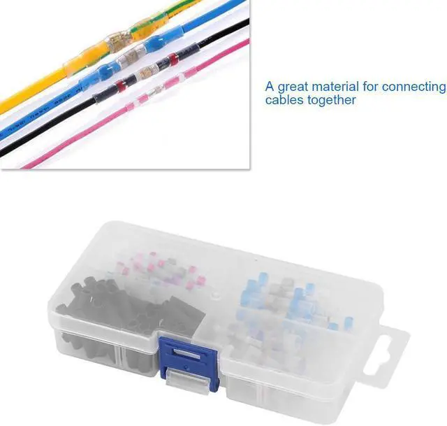 Specification:Material: PolyolefinWeight: 72g/2.5ozQuantity: 102pcs Features: These are 102pcs solder seal heat shrink butt wire connector terminals, easy and convenient to use for the combination of low melting point alloy and heat shrinkage tube. Hot melt adhesive with waterproof function, good sealing, waterproof and insulation performance. Easy to identify: different colors coded tube makes it is easy for you to choose the suitable one. A great material for connecting cables together. Suitable for wire connection, welding heat shrink protection, waterproofing, cable gathering and maintenance, automobile maintenance, etc.