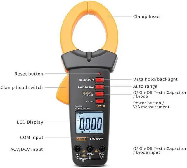 BM2000VA Clamp Meter 2000V 2000A AC With Surge Clamp Multimeter Anti-Burn Auto Power Off High Precision Capacitor Ammeter BM2000VA Clamp Meter 2000V 2000A AC With Surge Clamp Multimeter Anti-Burn Auto Power Off High Precision Capacitor Ammeter