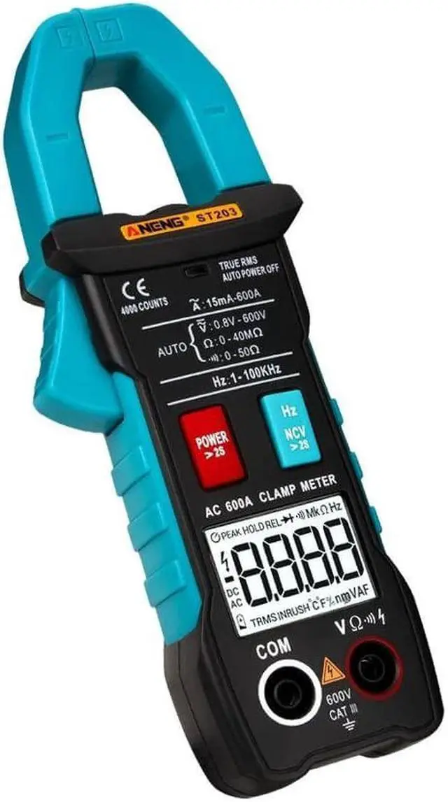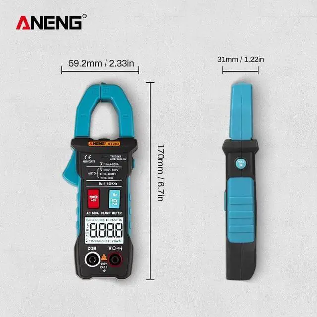 Specifications:Material:ABSColor:Blue Red Orange Black(Optional)Functional parameters:DC voltage DCV :yesAC voltage ACV :yesAC current ACA :yesResistor / On-Off Test :yesFrequency F :yesNCV :yesZero line / Fire line test :yesFull unit symbol :yesBacklight manual/Auto off :yesTrue RMS measurement :yesFlashlight lighting :yesHOLD :yesTechnical Specifications:DC voltage (DCV):4V-40V-400V-600V (0.5%+3)AC voltage (ACV): 4V-40V-400V-600V (1%+3)AC current(ACA):15mA-4A-40A-400A-600A (2.5%+8)Resistance: 4k-40k-400k-4M-40M (0.5%+3)Frequency measurement: 4Hz-40Hz-400Hz-4kHz-40kHz-400kHz-Notes:1. When measuring voltage, please do not input the limit voltage exceeding the effective value of DC 1000V or AC 750V;The voltage below 2.36V is a safe voltage. When measuring higher than 36V DC and 25V AC voltage, check whether the test leads are in reliable contact, are connected correctly, and are well insulated to avoid electric shock;3. When changing functions and ranges, the test leads should leave the test point.The 4000counts is a pocket-sized 3 3/4-digit automatic digital instrument with stable performance, high precision, high reliability, clear reading and overload protection. The 4000counts is a pocket-sized 3 3/4-digit automatic digital instrument with stable performance, high precision, high reliability, clear reading and overload protection.Features:1. Display: liquid crystal display (LCD)2. Maximum display: 4000 (3 3/4) bit automatic polarity display;3. Measurement method: double integral A/D conversion;4. Sampling rate: about 3 times per second;5. Over range display: The highest position shows OL;6. Low voltage displaysymbol appears7. Working environment(040)relative humidity80%8. Power: AAA 1.5V battery Batteries excluded9. Volume (size): 1706530mm (LWH)10. Weightabout160gBatteries excluded 1.5V battery11. Attachment: One instruction manual, one outer packaging box, one pair of test leads, Portable storage bag
