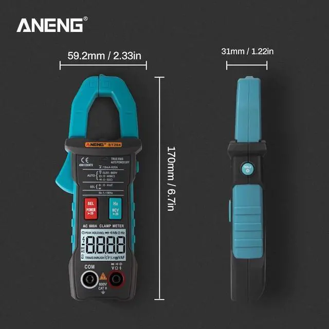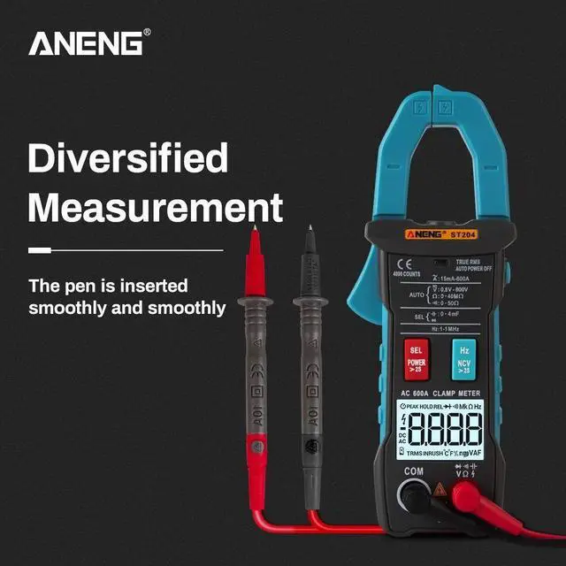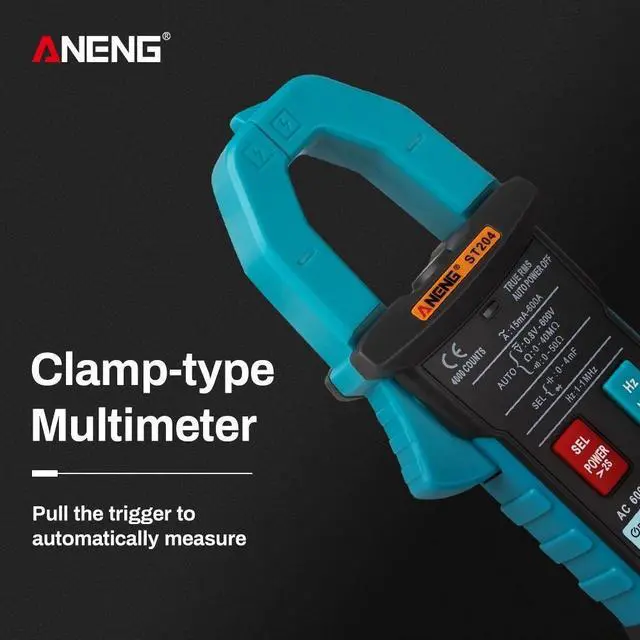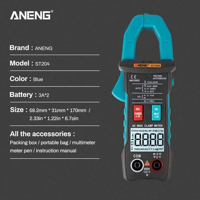ANENG ST204 4000 Counts Full Intelligent Automatic Range True RMS Digital Multimeter Clamp Meter AC/DC Voltage NCV Resistance Auto Range Flashlight - Blue