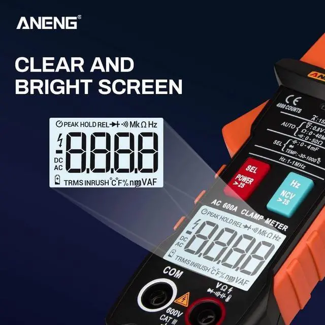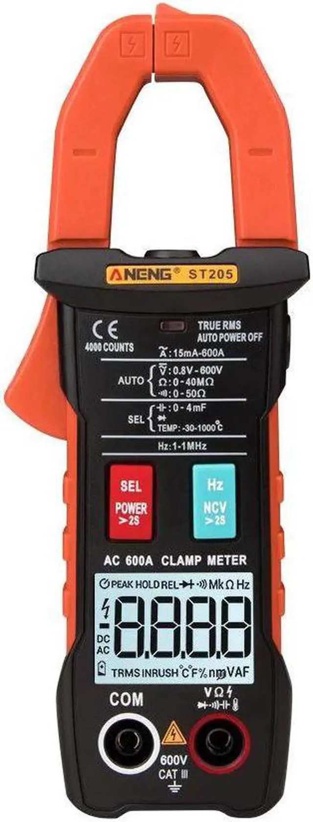 ANENG ST205 4000 Counts Full Intelligent Automatic Range True RMS Digital Multimeter Clamp Meter AC/DC Voltage NCV Resistance Auto Range Flashlight with Temperature Measurement - Orange