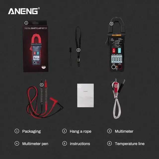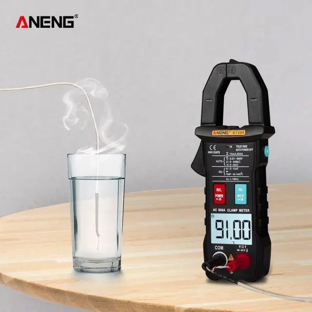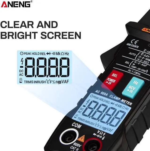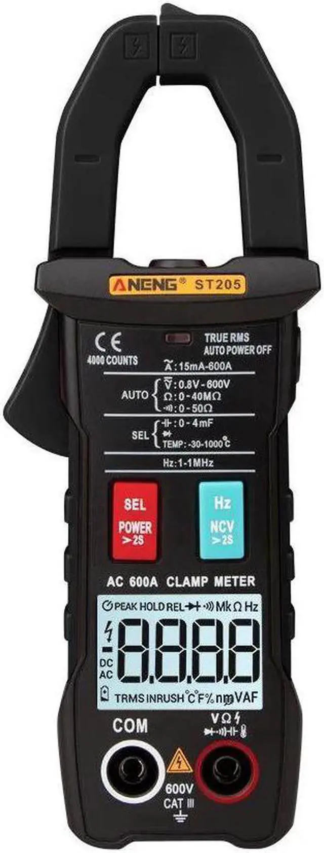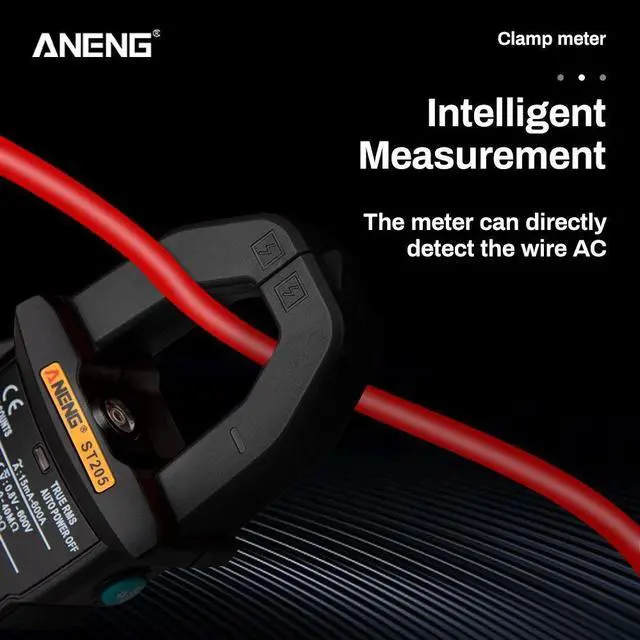 ANENG ST205 4000 Counts Full Intelligent Automatic Range True RMS Digital Multimeter Clamp Meter AC/DC Voltage NCV Resistance Auto Range Flashlight with Temperature Measurement - Black