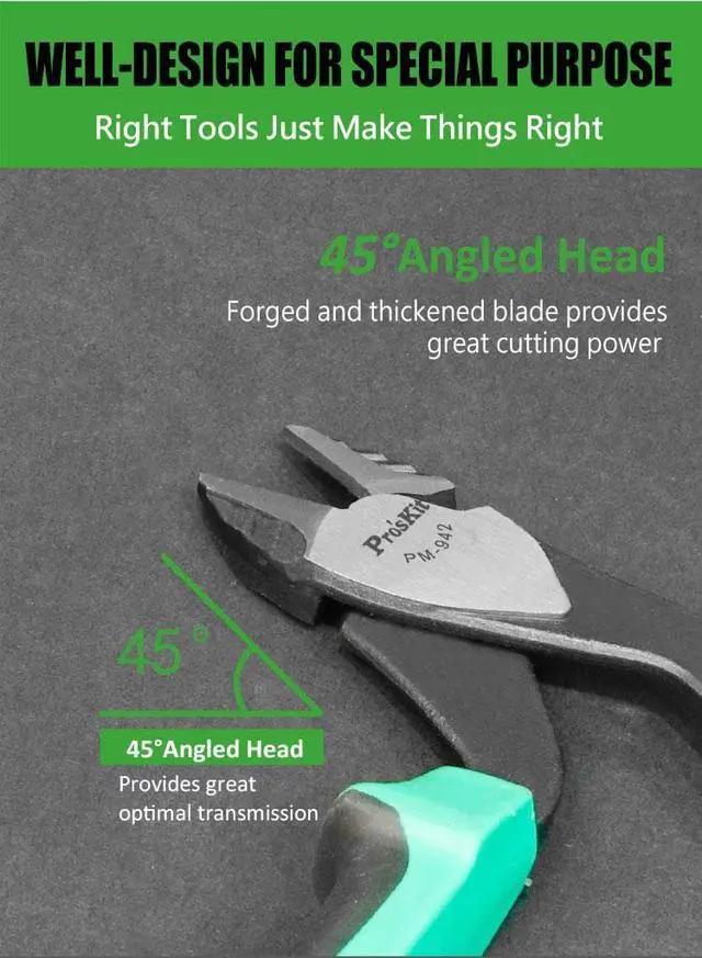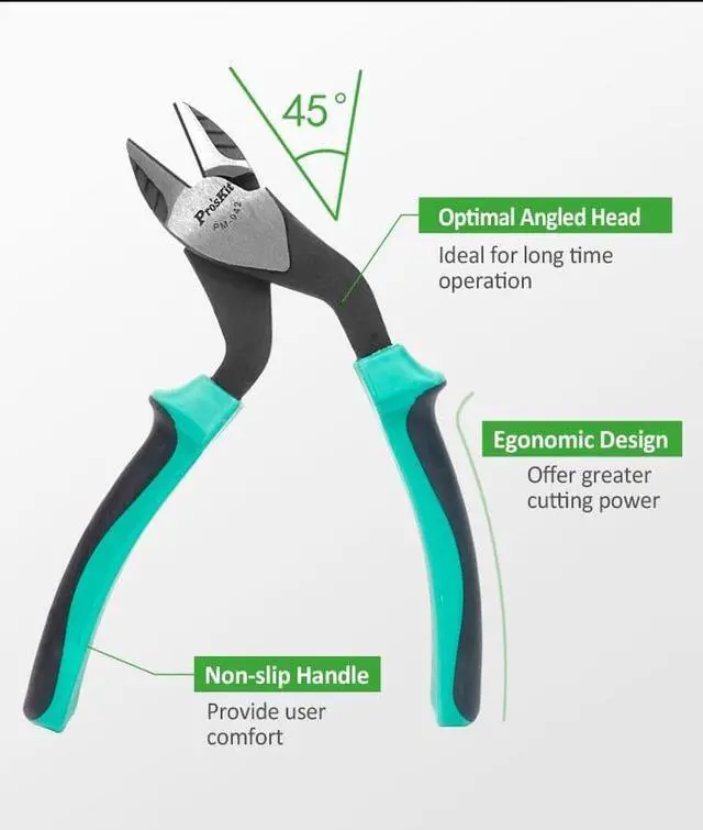 Material CR-NI Surface treatment Blacken polished Handle PP-TPR TTL length(mm) 170 Head width(mm) 27 Head thickness(mm) 11 Working length 22.5 Hardness 45 CR-NI forged blade Angle head design provides great optimal transmission High leverage design for force-saving Cutting capability : Hard steel2.0mm, Soft steel 3.0mm, Copper 3.2mm