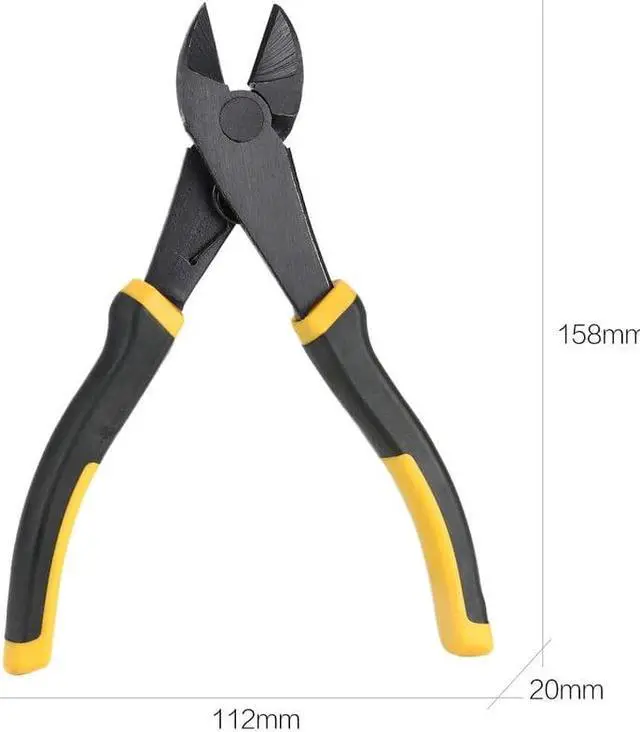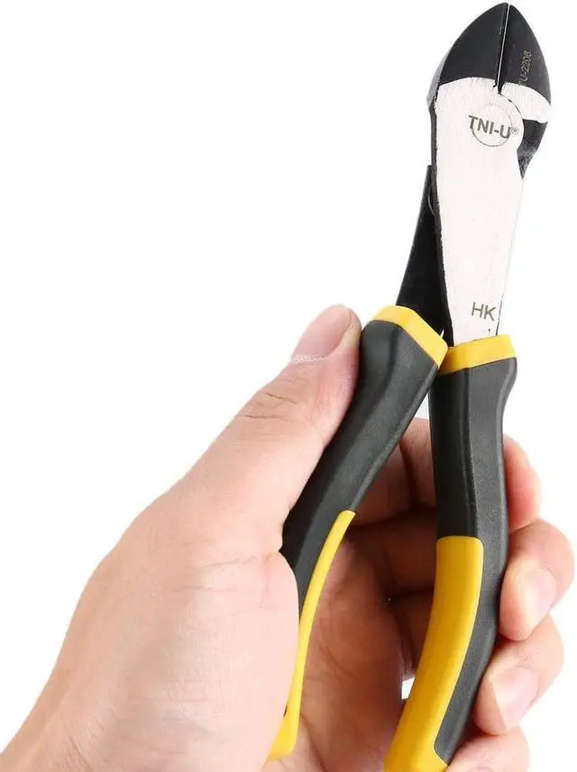 Specification:Brand:TNI-UModel:TU-2206Color: Black & Yello Type:Diagonal PlierHandle Style: Straight Tip Material: High carbon steelItem Size: 158 x 112 x 20mm/ 6.22x 4.41 x 0.79inHandle Weight: 172g/6.06ozPackage Information:Package Size: 210 x 72 x 75mm/8.27 x 2.83 x 2.95inPackage Weight: 194g/6.83ozBlister Package Feature:1.This is a cutting plier for cutting wire.2.Supply the best cutting function, convenient.3.With anti-slip sticky plastics for its handle, it has a good sense of grasp.4.Unique design, more comfortable and easy to use.5.With high carbon steel forging, high quality.Description:1.Portable and lightweigt,can be put into pocket.2.Surface treated with nickel iron alloy.3.Widely use in factory and home.